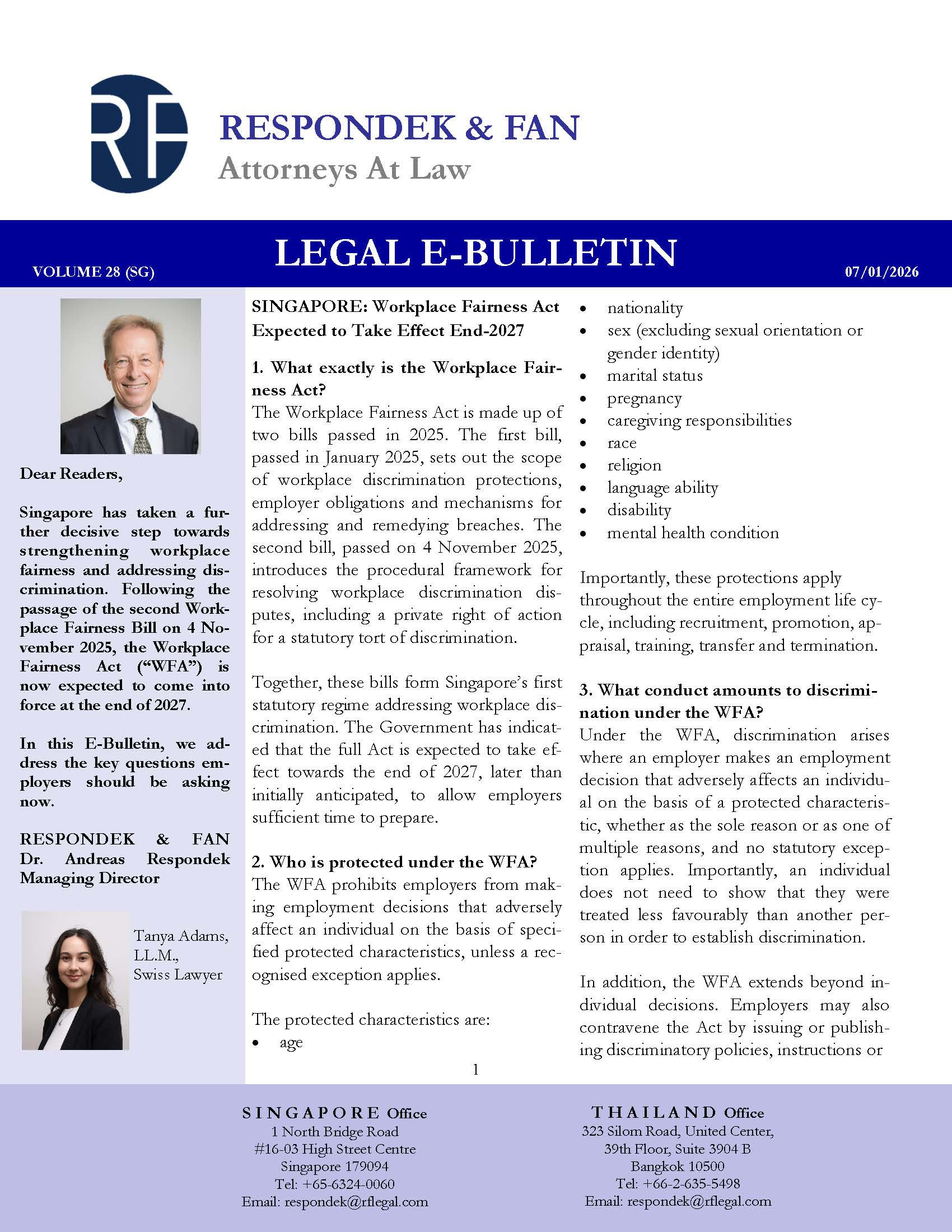 Seit mehr als 25 Jahren unterstützt Respondek & Fan erfolgreiche internationale Unternehmen bei ihrem Markteintritt und ihrer Expansion in Asien. Mit strategisch gelegenen Büros in Singapur und Bangkok helfen wir Unternehmen, rechtliche Hürden zu minimieren und wirtschaftliche Chancen zu maximieren.